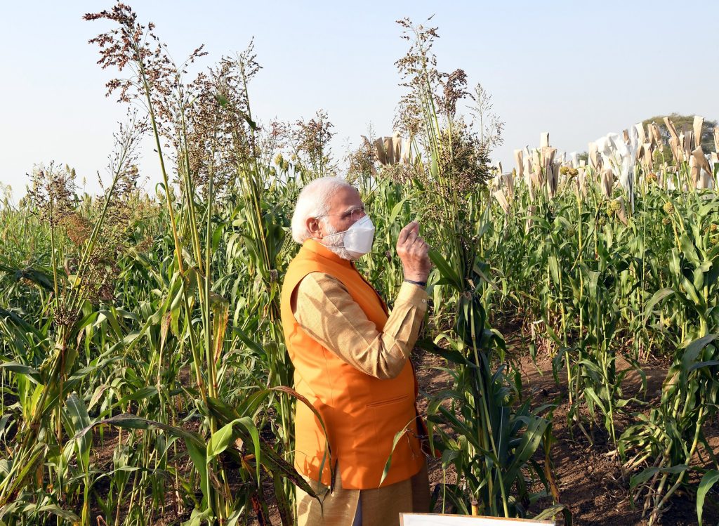PM visit to the ICRISAT farms, during the 50th Anniversary celebrations of ICRISAT, in Hyderabad on February 05, 2022.