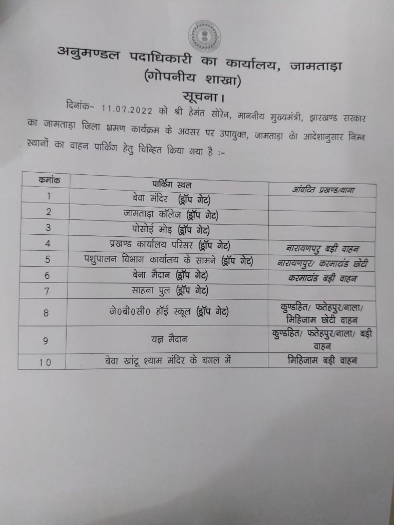 BHARATTV.NEWS: ओम शर्मा : जामताड़ा । इतने समय में वे विभिन्न योजनाओं का शिलानायस करेंगे। सबसे पहले दोपहर २: १५ में रांची से जामताड़ा प्रखंड के दुलाडी में हैलीपेड में हेलीकाप्टर से उतरेंगे। इसके बाद सड़क मार्ग द्वारा जामताड़ा गाँधी मैदान में आयोजित कार्यक्रम स्थल में पधारेंगे। जहाँ सिद्धू कानू की प्रतिमा पर मलयर्पण करेंगे। इसके बाद पारम्परिक नृत्य से स्वागत किया जायेगा। इसके बाद मंच पर माननीय अतिथियों का स्वागत किया जायेगा। फिर २: ३८ मिनट में मुख्यमंत्री के कर कमलों द्वारा दीप प्रज्वल्लित कर कार्यक्रम का उद्घाटन किया जायेगा। फिर उपयुक्त द्वारा स्वागत भाषण दिया जायेगा।2: 45 मिनट में जिला 20 सूत्री उपाध्यक्ष श्यामलाल हेंब्रम द्वारा अभिभाषण किया जाएगा। 2:50 में विधायक एवं माननीय मंत्रीगण द्वारा अभिभाषण होगा। २: 55 में मुख्यमंत्री सभा को संबोधित करेंगे। 3:20 में परिसंपत्तियों का वितरण किया जाएगा। 3:25 मिनट पर योजनाओं का शिलान्यास/उद्घाटन किया जाएगा। 3:30 में विभिन्न विभागों के द्वारा लगाए गए स्टॉल का भ्रमण मुख्यमंत्री करेंगे। 3:35 में धन्यवाद ज्ञापन होगा। 3:45 पर मुख्यमंत्री गांधी मैदान से प्रस्थान करेंगे। 4:00 बजे जामताड़ा परिसदन में मुख्यमंत्री का आगमन होगा जहां भोजन/अल्पाहार की व्यवस्था होगी। 4:35 में सड़क मार्ग के द्वारा जामताड़ा परिसदन से प्रस्थान कर जाएंगे और 5:00 बजे दुलाडीस्थित हेलीपैड पहुंच जाएंगे।