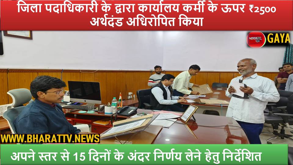 जिला पदाधिकारी के द्वारा शंकर दास, कार्यालय कर्मी के ऊपर ₹2500 अर्थदंड अधिरोपित किया BHARATTV.NEWS: गया, 28 नवंबर, 2023, लोक…