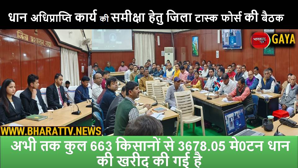 अभी तक कुल 663 किसानों से 3678.05 मे0टन धान की खरीद की गई है BHARATTV.NEWS,गया, 28 नवंबर 2023: समाहरणालय सभाकक्ष,…