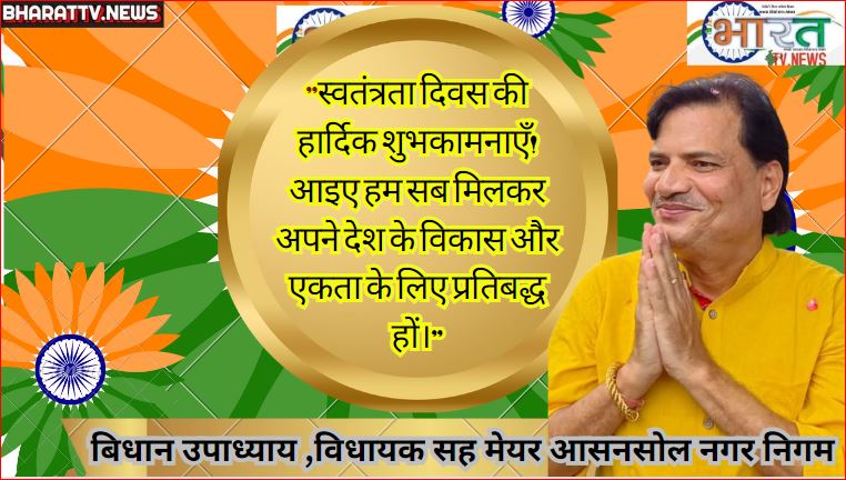 बिधान उपाध्याय ,विधायक सह मेयर आसनसोल नगर निगम की ओर से “स्वतंत्रता दिवस की हार्दिक शुभकामनाएँ! आइए हम सब मिलकर…