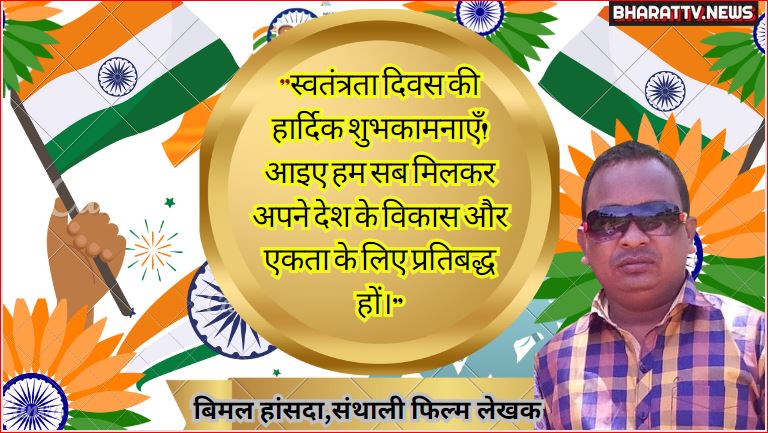 बिमल हांसदा,संथाली फिल्म लेखक की ओर से “स्वतंत्रता दिवस की हार्दिक शुभकामनाएँ! आइए हम सब मिलकर अपने देश के विकास…