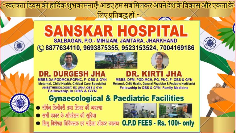 संस्कार अस्पताल की ओर से “स्वतंत्रता दिवस की हार्दिक शुभकामनाएँ! आइए हम सब मिलकर अपने देश के विकास और एकता…